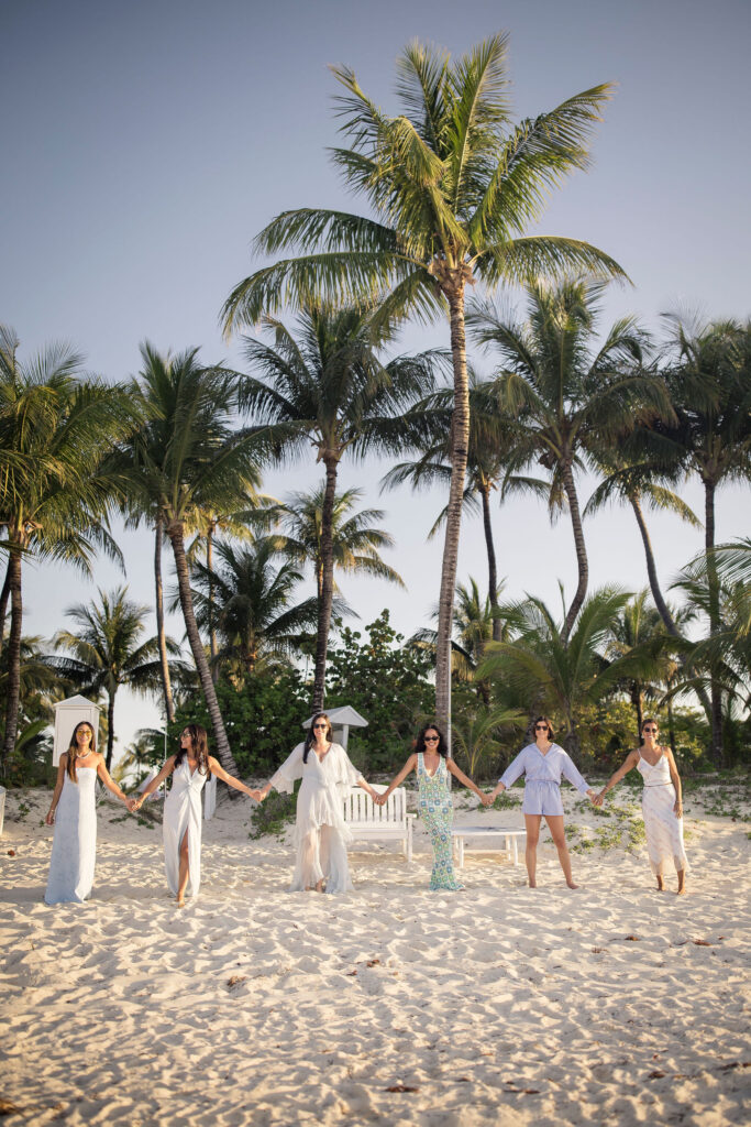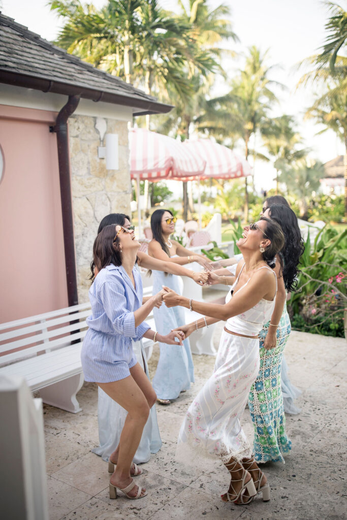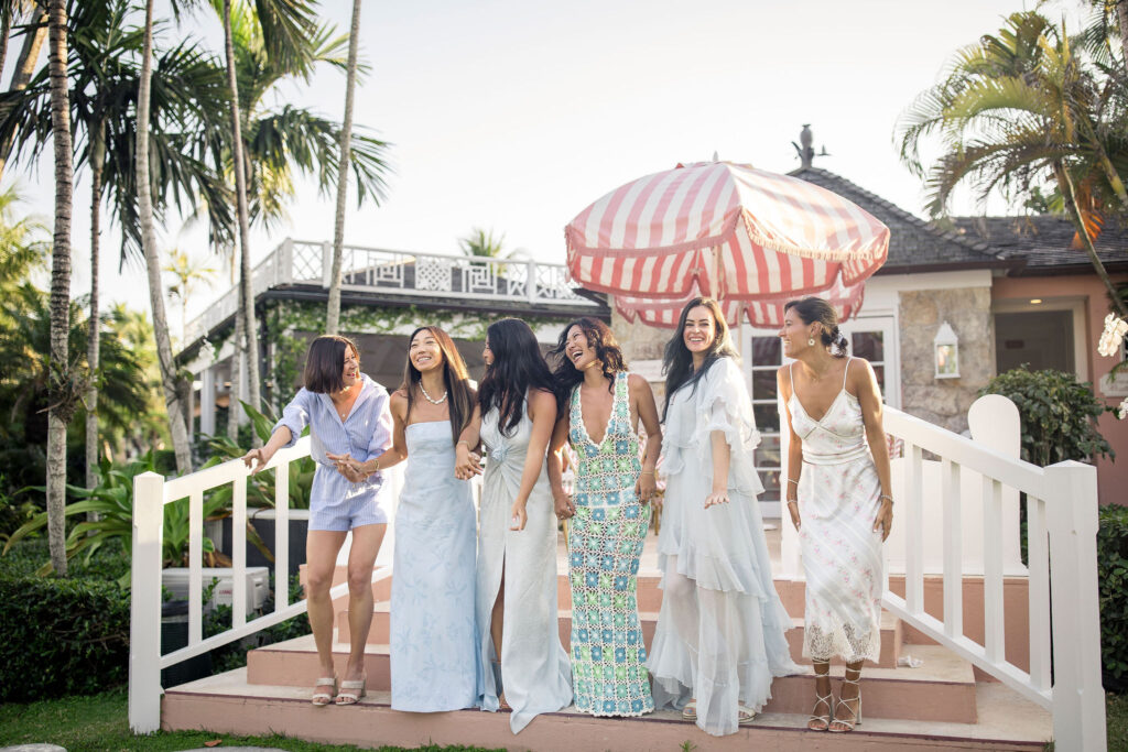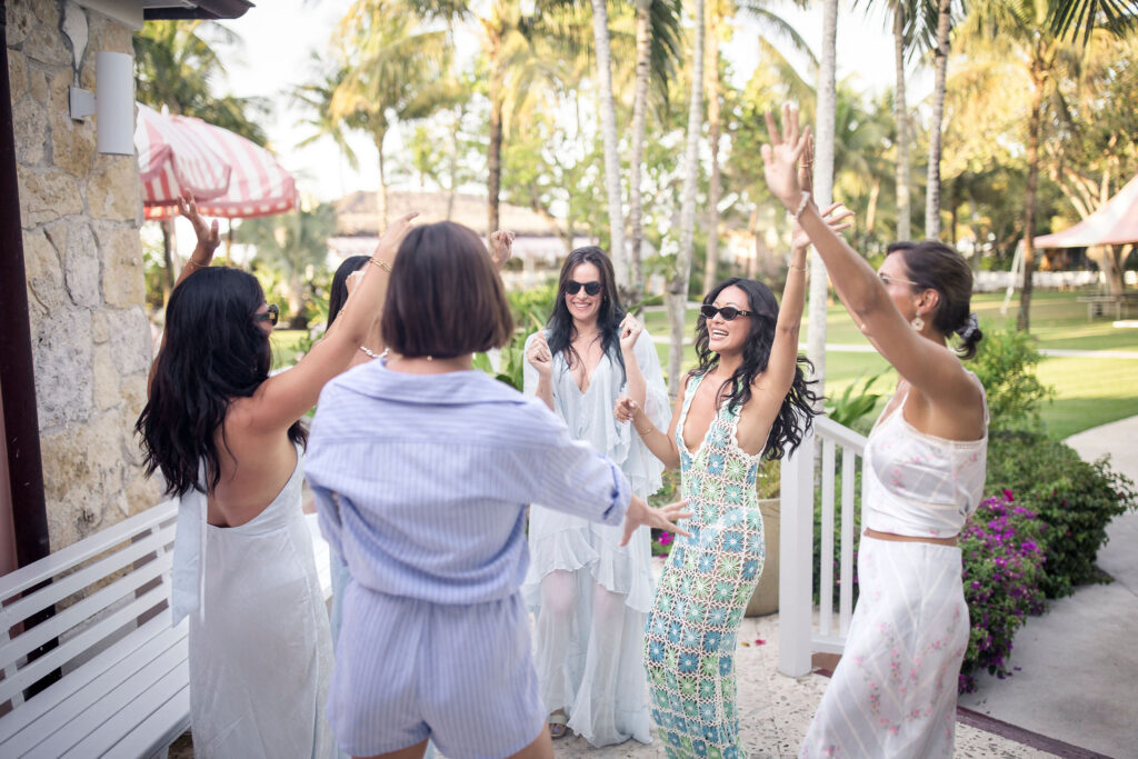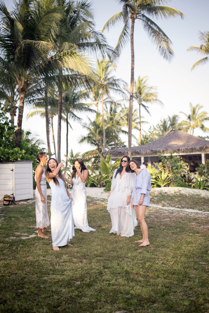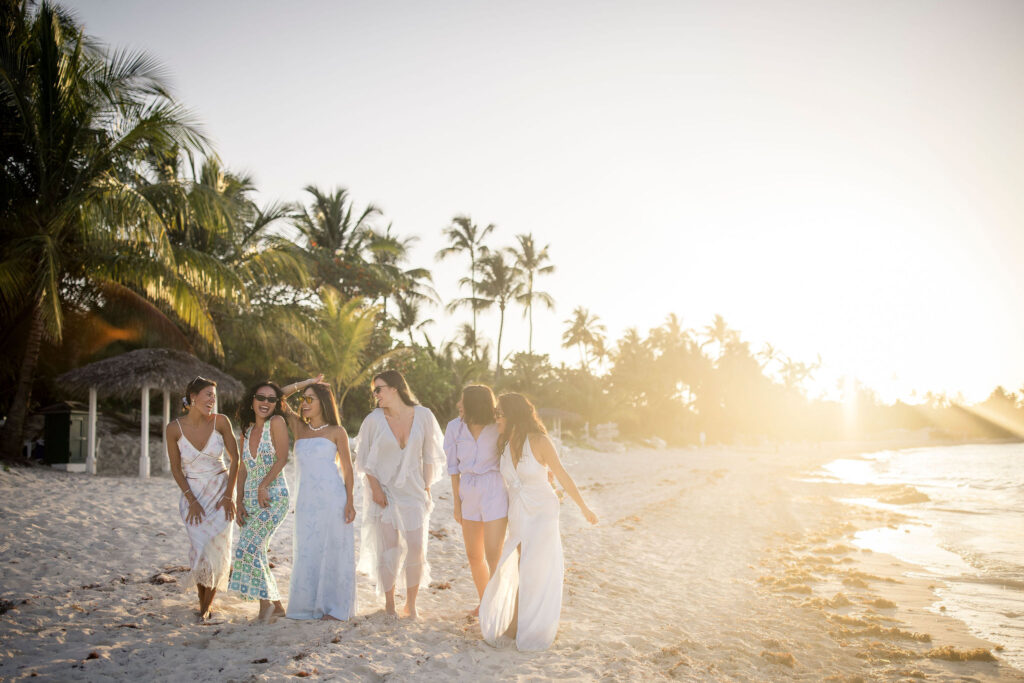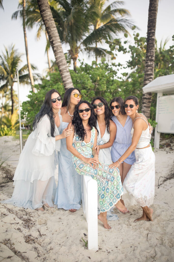The day of the session, Sarah’s crew showed up glowing with energy and style. Between the palm-lined paths and the white sand, every corner felt like an editorial spread waiting to happen. The bridesmaids laughed, celebrated, and made sure Sarah felt every bit the star she is.