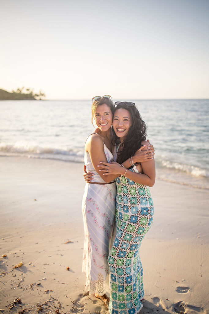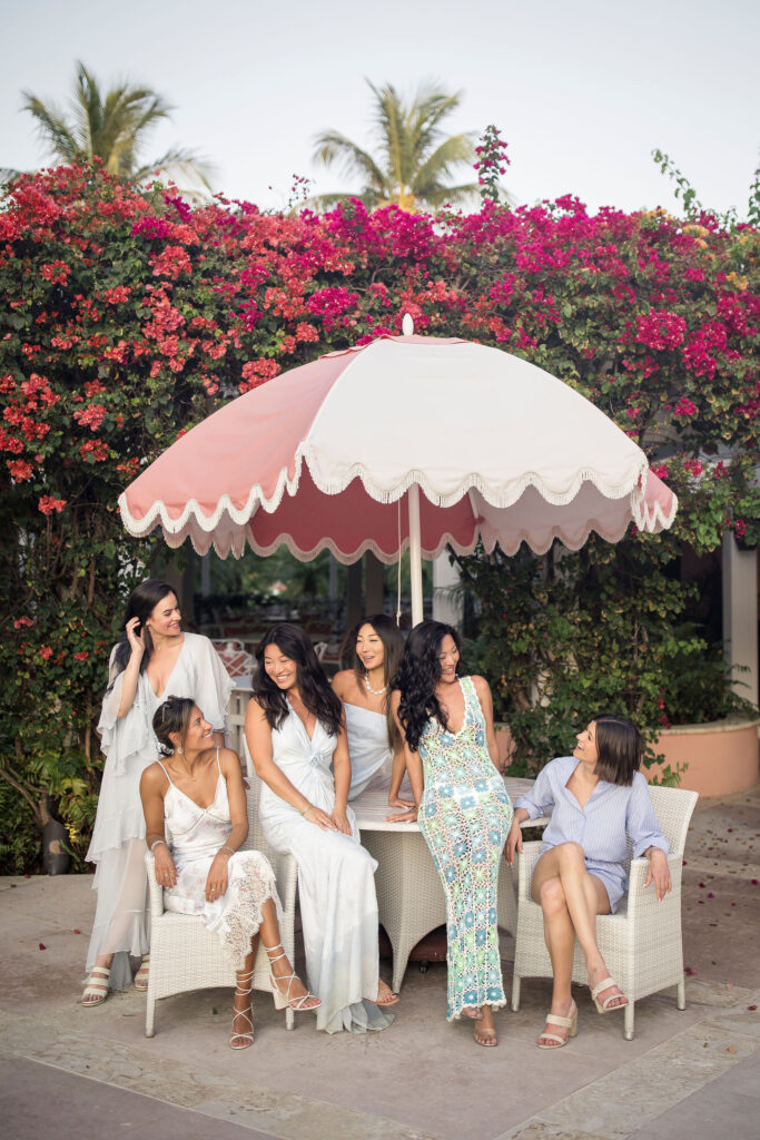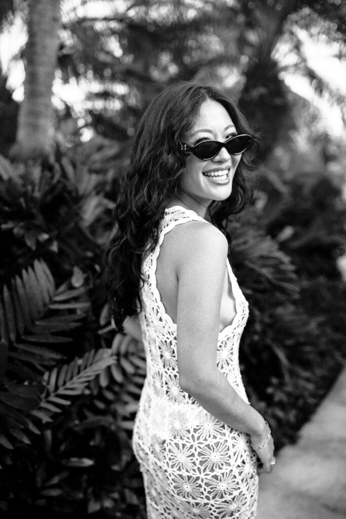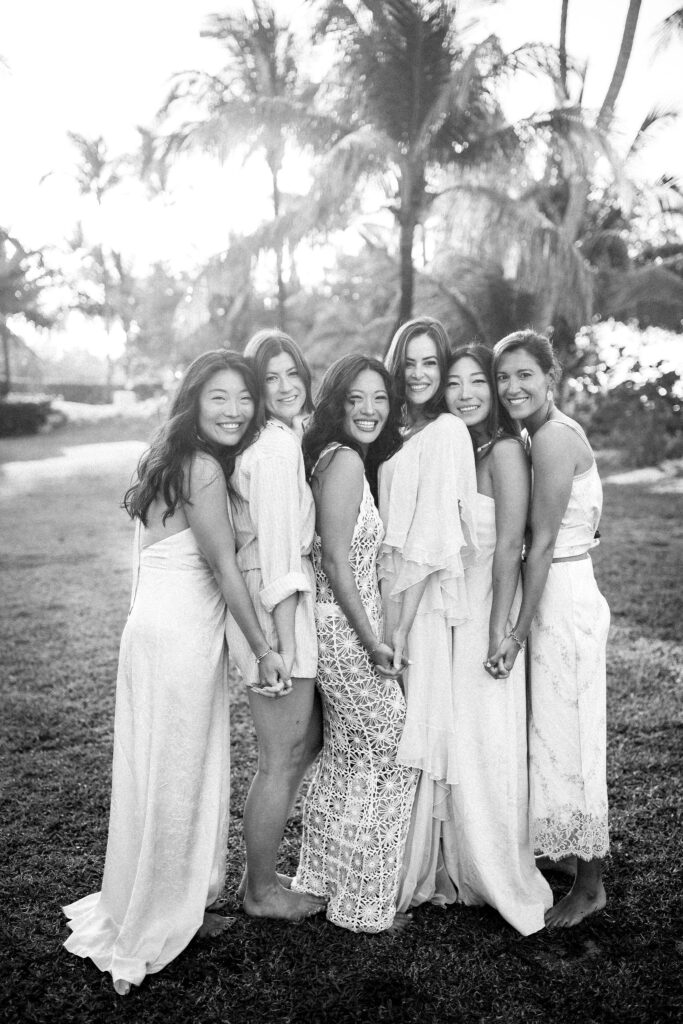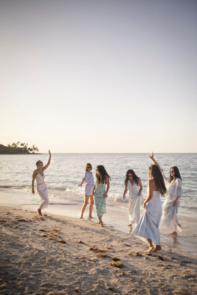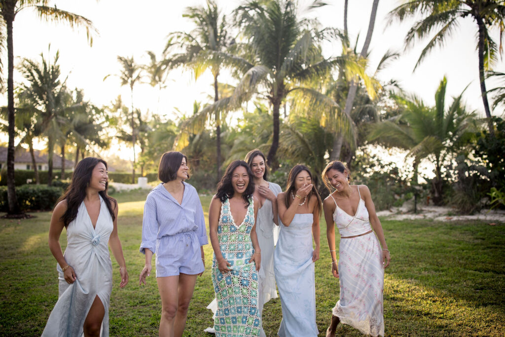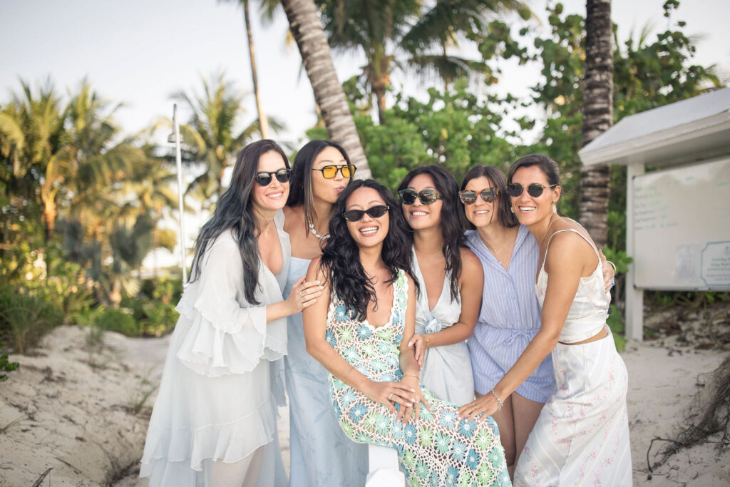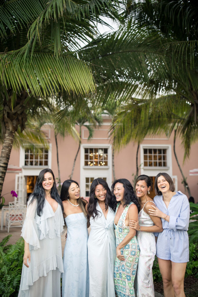 The day of the session, Sarah’s crew showed up glowing with energy and style. Between the palm-lined paths and the white sand, every corner felt like an editorial spread waiting to happen. The bridesmaids laughed, celebrated, and made sure Sarah felt every bit the star she is.