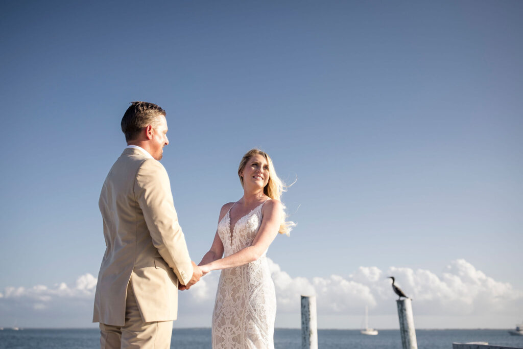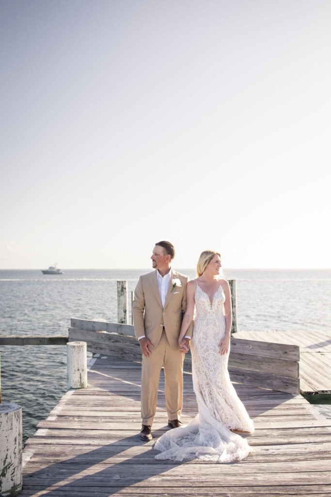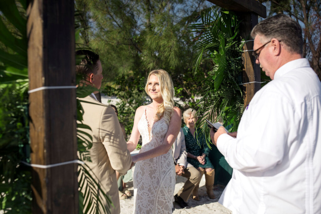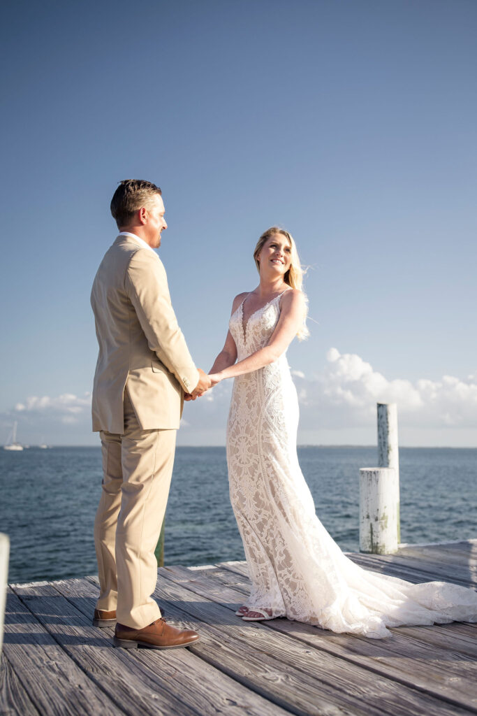 Courtney was radiant in that timeless effortless way that only comes from joy. Quentin looked at her with a steadiness that spoke volumes. The kind of love that feels safe, adventurous, and deeply rooted all at once. As they exchanged vows, surrounded by family and the natural beauty of the harbor, it felt as though the island itself was bearing witness.