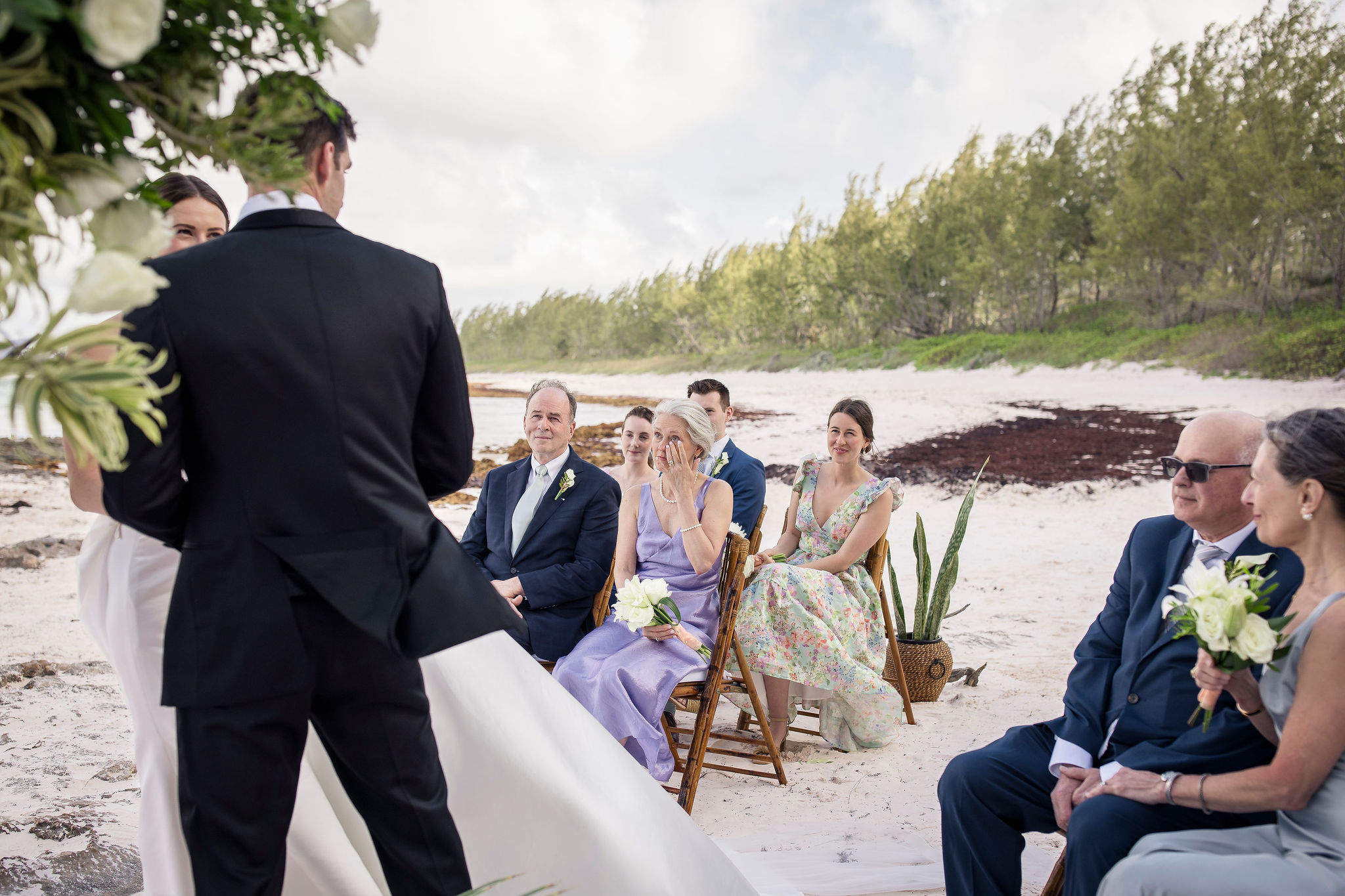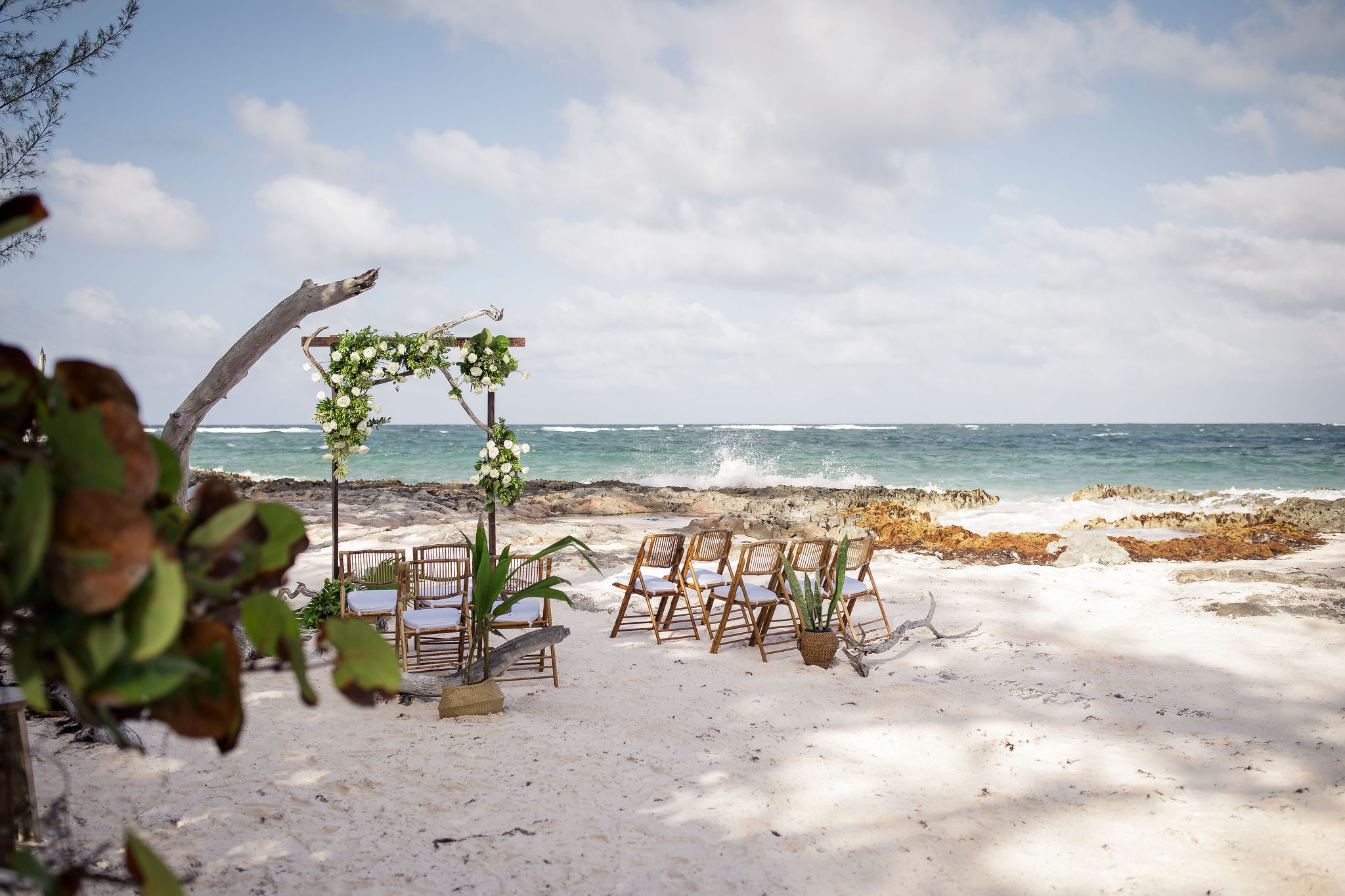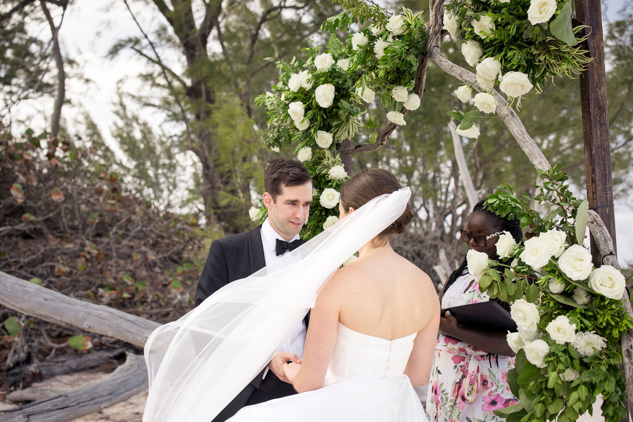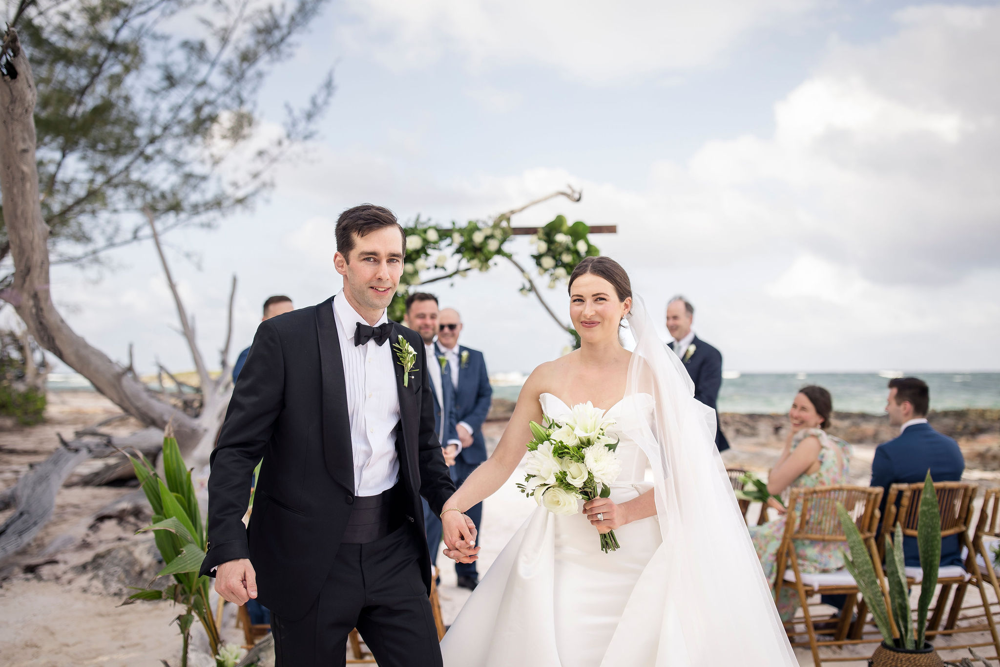 The ceremony took place right on the beach, framed by the turquoise waters that make Eleuthera so special. The décor, beautifully styled by Mish at Boy Meets Girl Weddings, reflected the couple’s style—simple, elegant, and full of island charm. With the waves gently rolling in as the soundtrack, there wasn’t a more perfect backdrop for their vows.