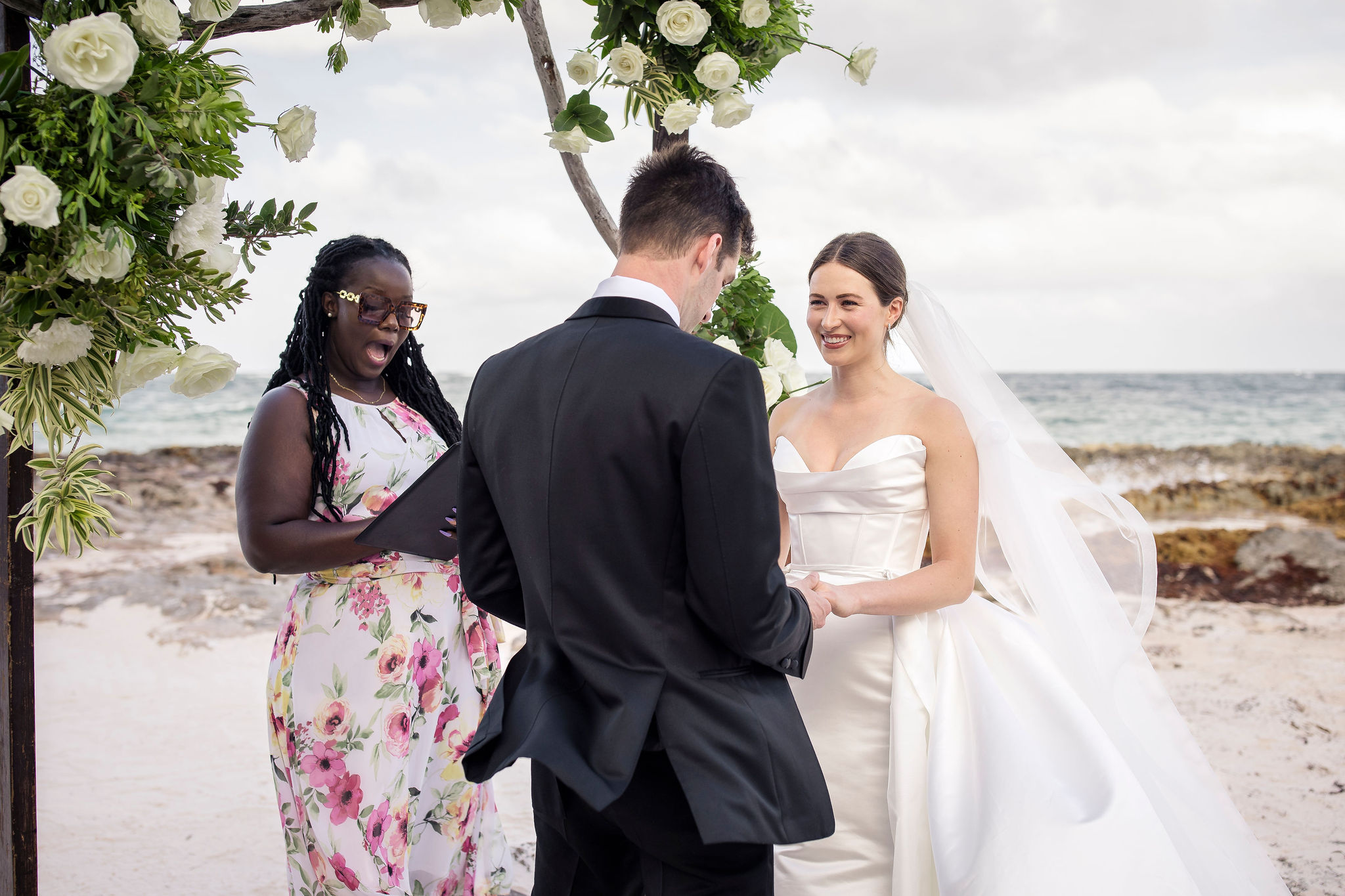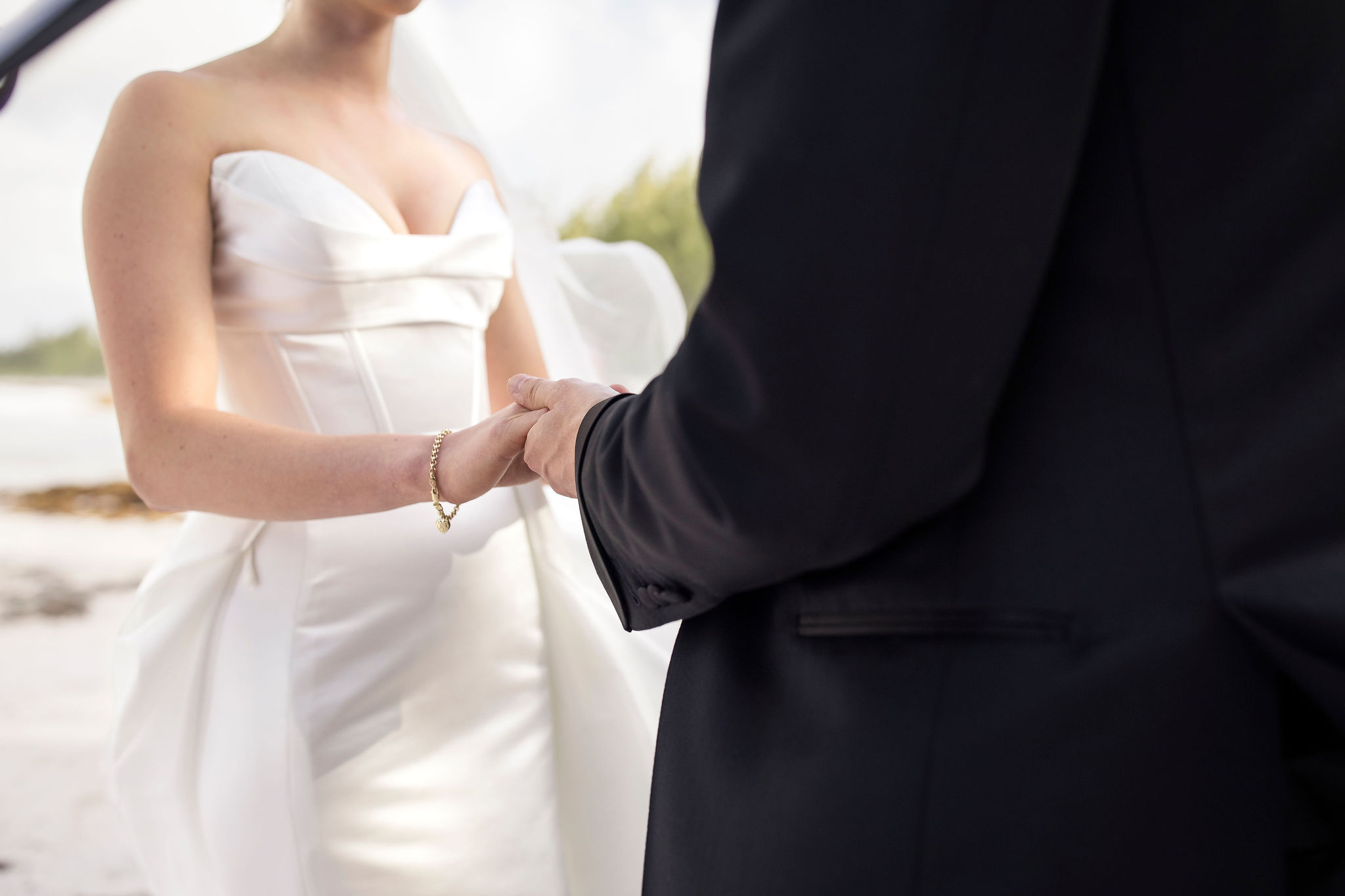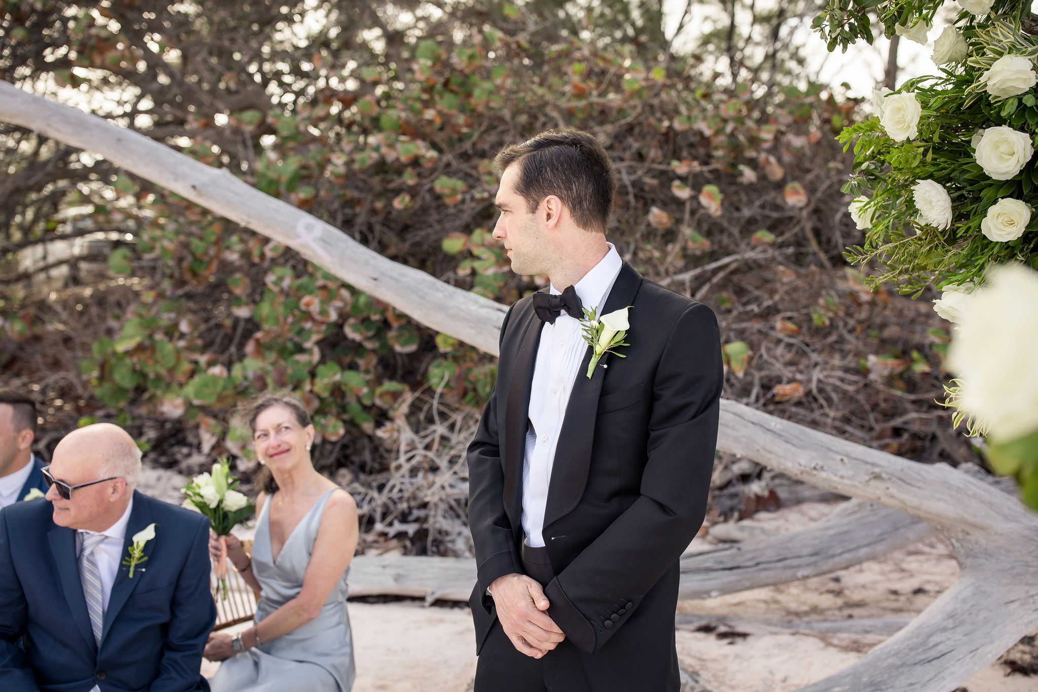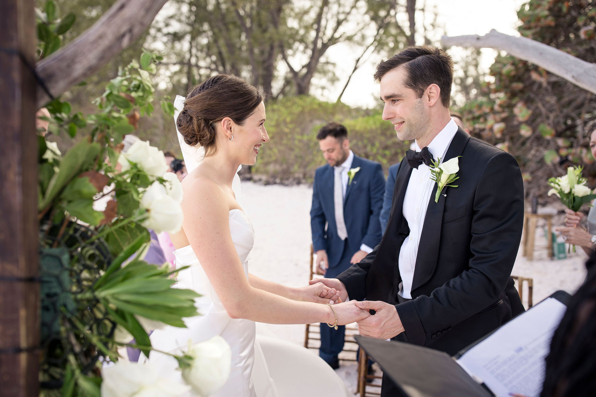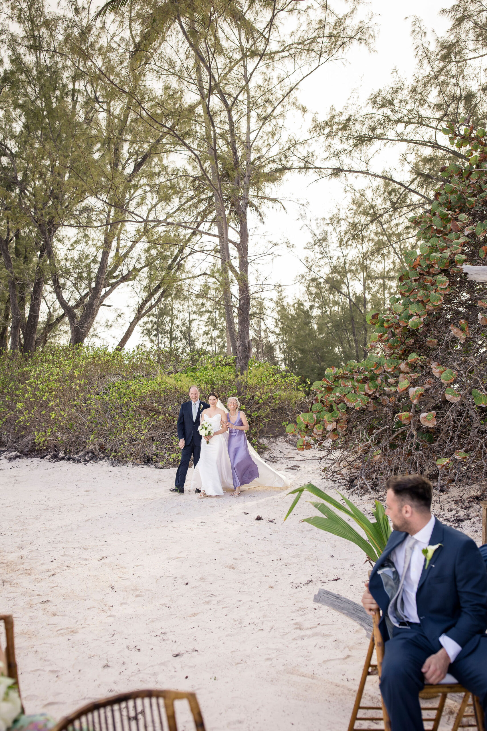 The ceremony took place right on the beach, framed by the turquoise waters that make Eleuthera so special. The décor, beautifully styled by Mish at Boy Meets Girl Weddings, reflected the couple’s style—simple, elegant, and full of island charm. With the waves gently rolling in as the soundtrack, there wasn’t a more perfect backdrop for their vows.